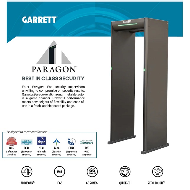 Garrett Paragon arkinis metalo detektorius pirmauja rinkoje savo pažangiomis technologijomis, kokybe bei labai patrauklia kaina. Naujausios technologijos įdiegtos į Paragon detektorių leidžia pasiekti aukščiausius rezultatus ir detektorius atitinka aukščiausio lygio reikalavimus. Tai jau ne kartą buvo įrodyta pasaulio olimpiadose bei kituose mažiau žinomuose renginiuose.
