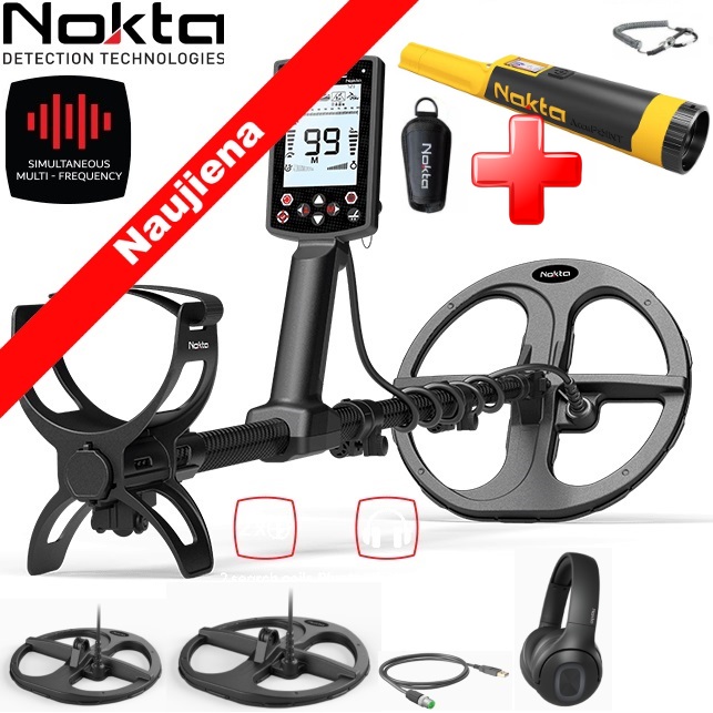 Detektorius parduodamas su be laido Nokta ausinėmis.