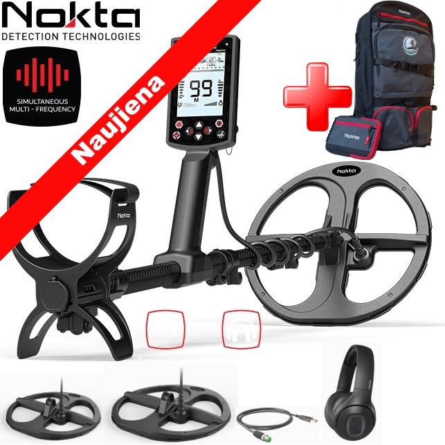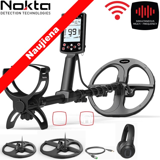 Detektorius parduodamas su be laido Nokta ausinėmis.