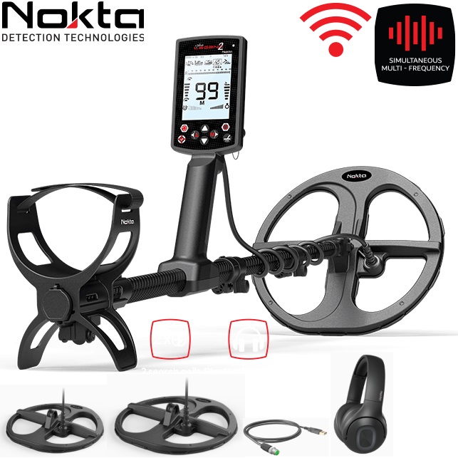 Galima pasakyti, kad tai tikrai naujos kartos detektorius. Jei reikia gylio, atsistatymo greičio ir tikslumo – rinkitės Nokta Legend 2 (Multi x2, daugiadažnis x5). Pilnai panardinamas į vandenį iki 5 metrų ir visiškai apsaugotas nuo dulkių metalo detektorius. Galintis dirbti vienu iš penkių pasirinktų dažnių (4 kHz/10 kHz/15 kHz/ 40 kHz/40 kHz) arba Multi režimu (visi dažniai dirba vienu kartu). Komplektuojamas su 11″ DD ir 8“ paieškos ritėmis bei su bevielėmis ausinėmis. Nesvarbu ar esate parke, ar lauke, ar pliaže, ieškote monetų, relikvijų ar papuošalų – Legend 2 nustebins Jus objekto aptikimo gyliu ir greičiu, nes tai naujausias detektorius rinkoje.