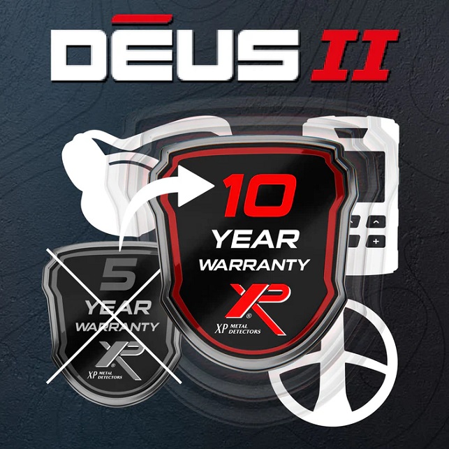 XP Deus II turi 5 metų garantiją, bet jeigu to maža, už 99€ mokestį galite nusipirkti papildomą 5 metų garantiją. Viso turėsite 10 metų garantiją.