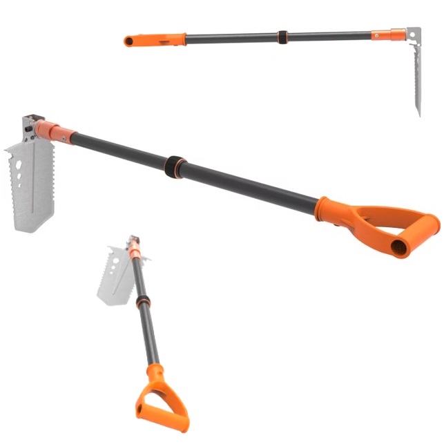 Teleskopinė konstrukcija (ilgis nuo 63 iki 110 cm.) ir pasidaro, kaip kirtiklis.